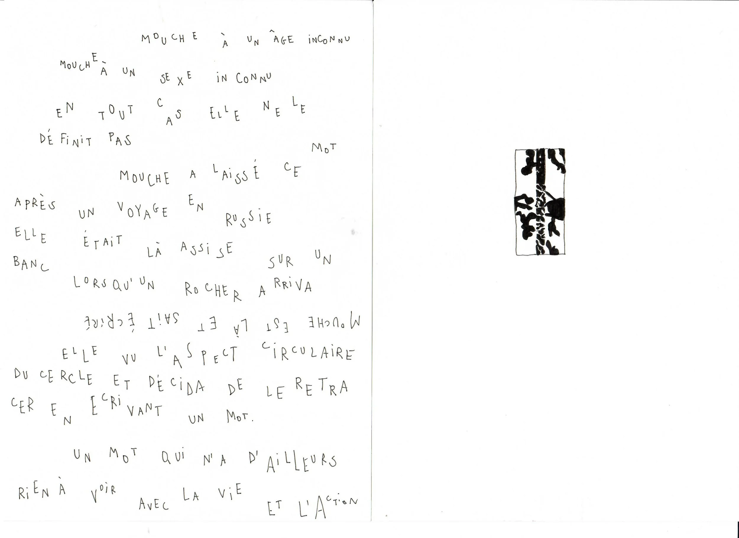 Depuis quelques années, je récupère de nombreux papiers, objets, débris que je trouve et qui traversent mon quotidien. Cela peut-être une enveloppe trouvée sur une table, un ticket de caisse, un cure-dent... Après les avoir rassemblés, ces objets sont scannés puis retravaillés au calque pour qu’ils apparaissent comme des contours. En jouant sur l’ambiguïté de la définition du mot dessin , j’ai mis en exergue le principe de l’écriture automatique tout étant sous l’influence de l’objet. Ce qui est écrit est un mélange entre fiction et réalité. Je reste sur le fait que l’écriture est l’assemblage de différentes formes, contours et traits pour former un tout qui permet de s’exprimer, de créer un langage. Mais cette fois, l’exercice de l’écriture automatique met à la même égalité le contenu de mes propos vis-à-vis de la forme, mélangeant les notions de plein et de vide, de forme et de contenu, de saturation et de transparence, fusionnant les différentes fragmentations de ma pensée.