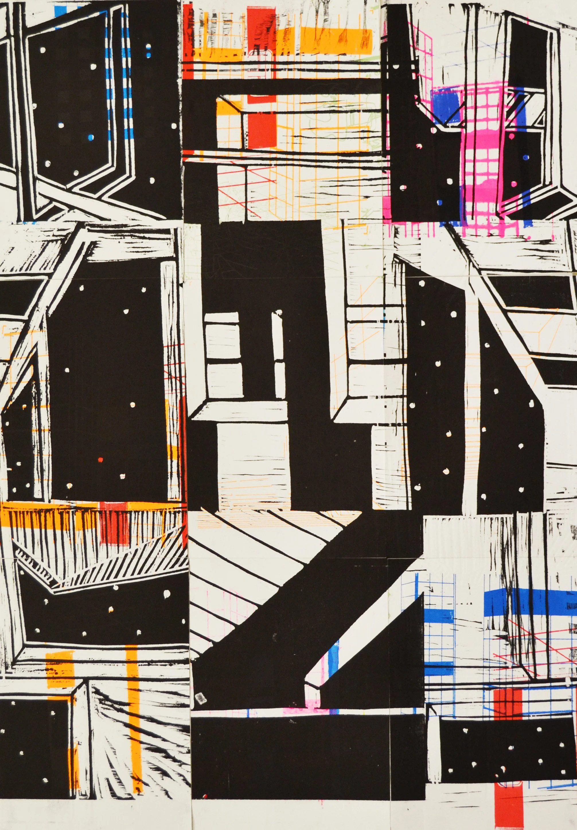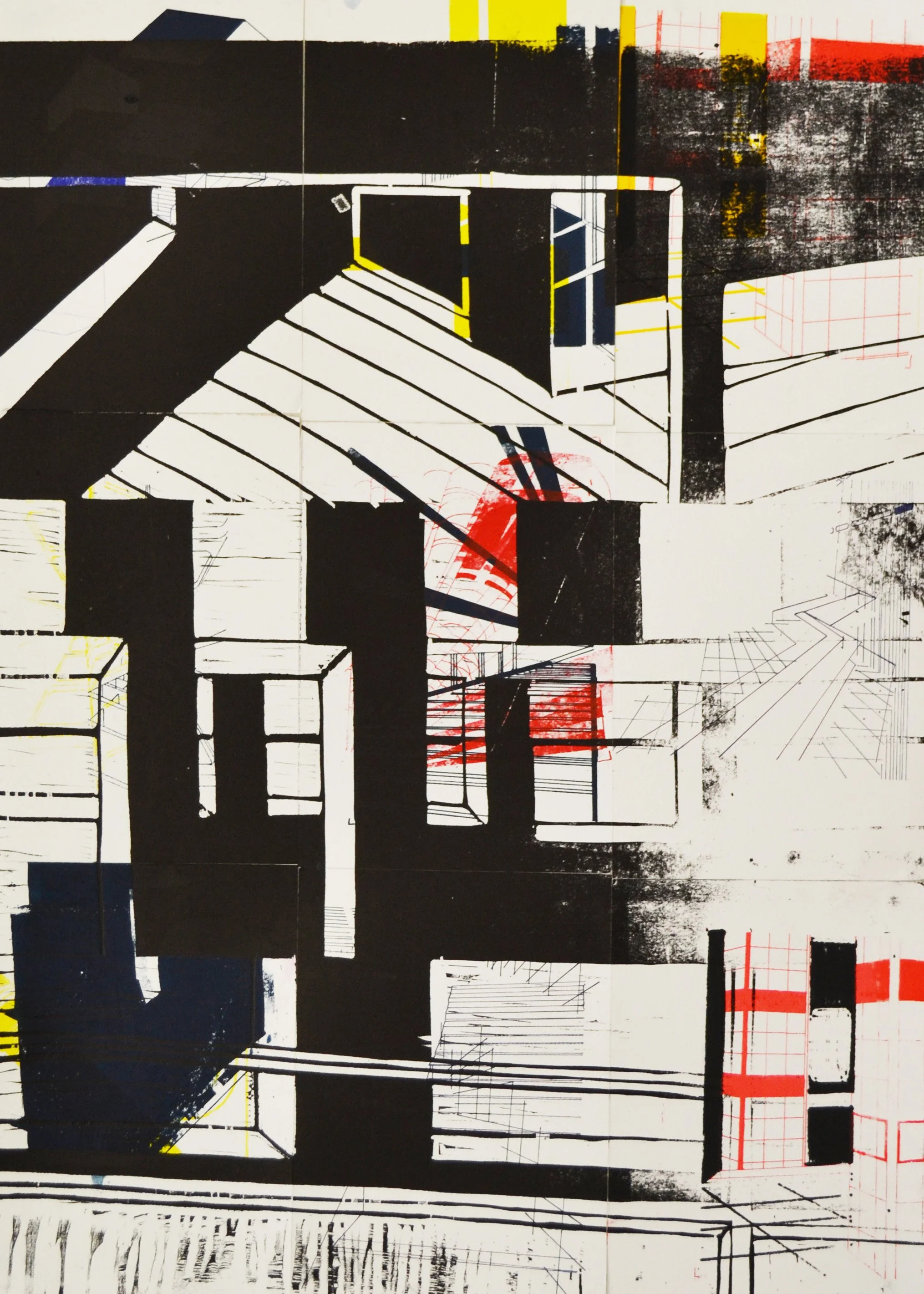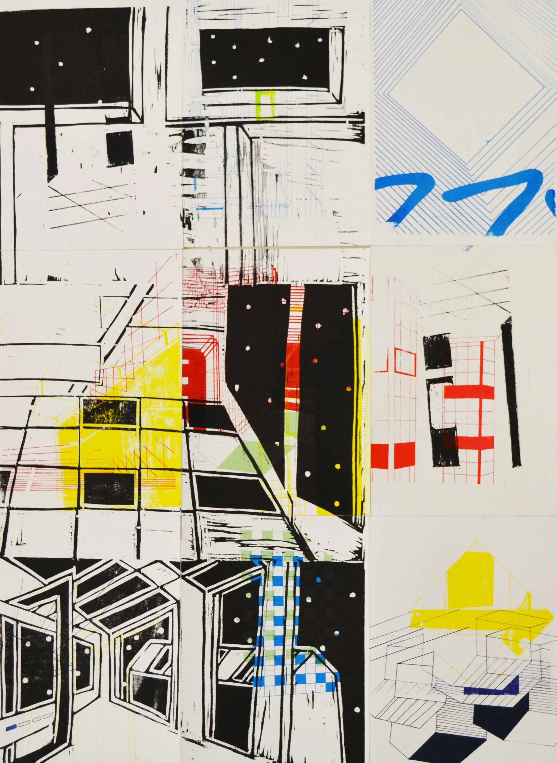 À partir de ce moment, les détails, les traits et les angles de l’urbanisme ont commencé à faire partie intégrante de mon regard. De la lithographie à la sérigraphie, j’ai sélectionné certains détails pour les fusionner grâce aux différentes techniques de l’image imprimée.
